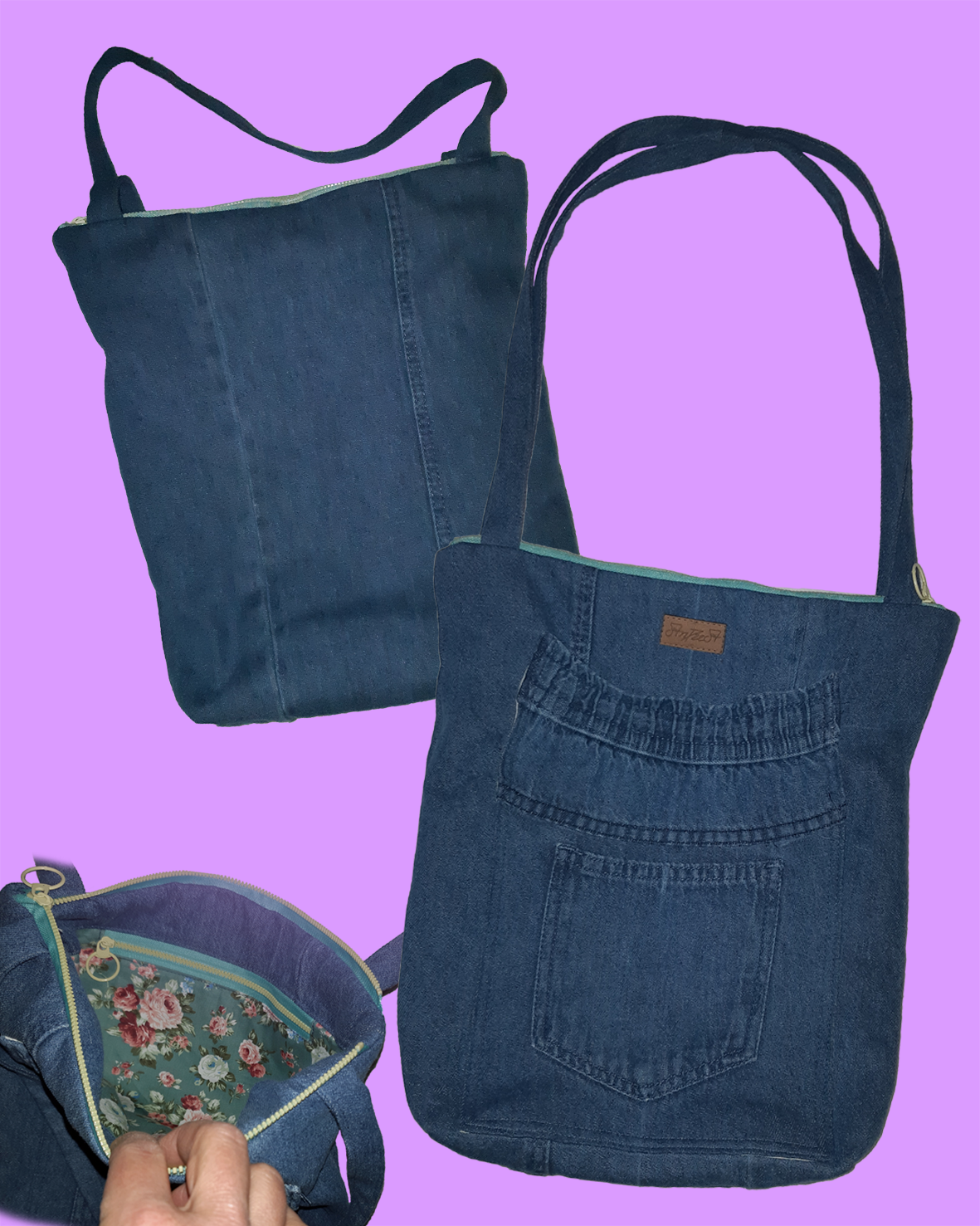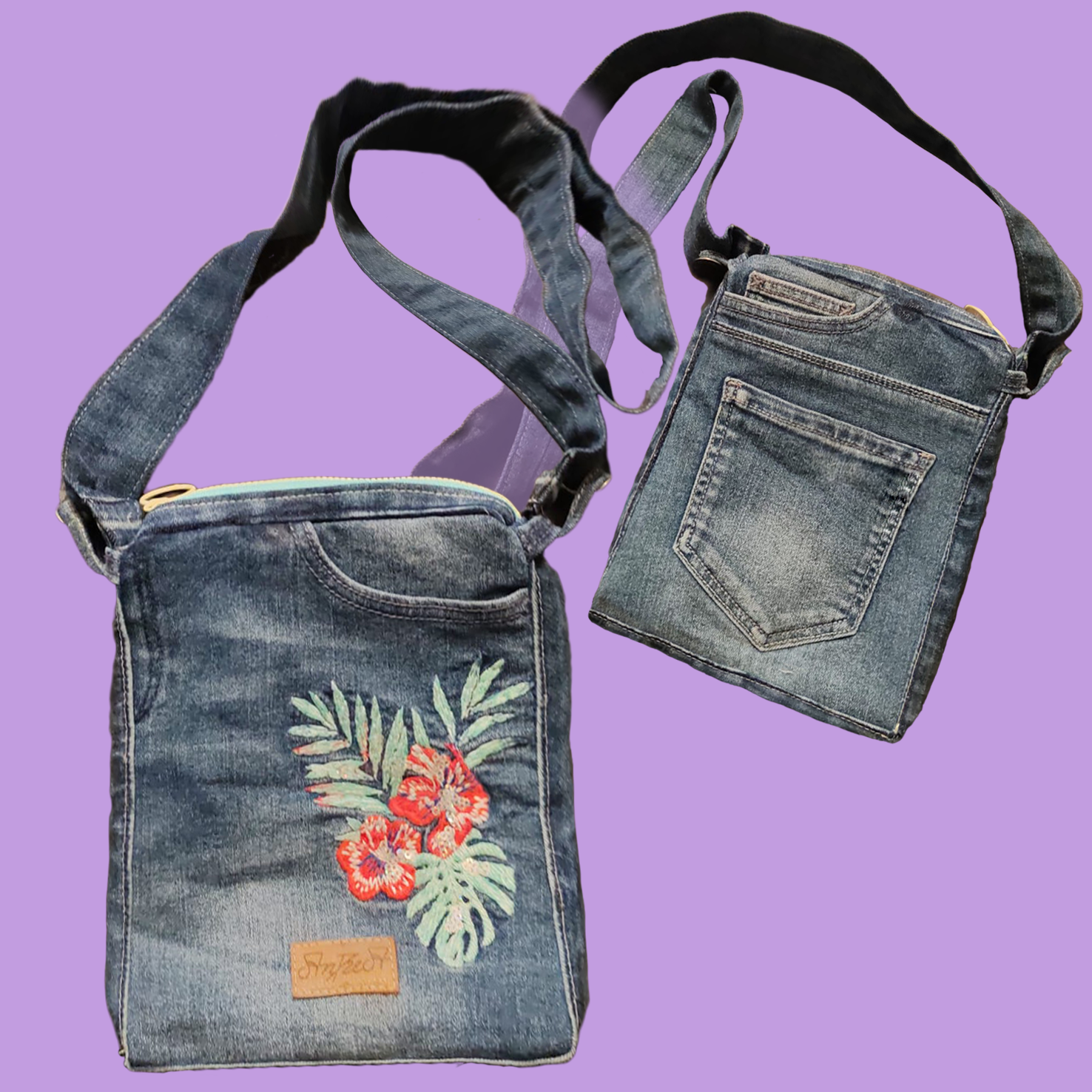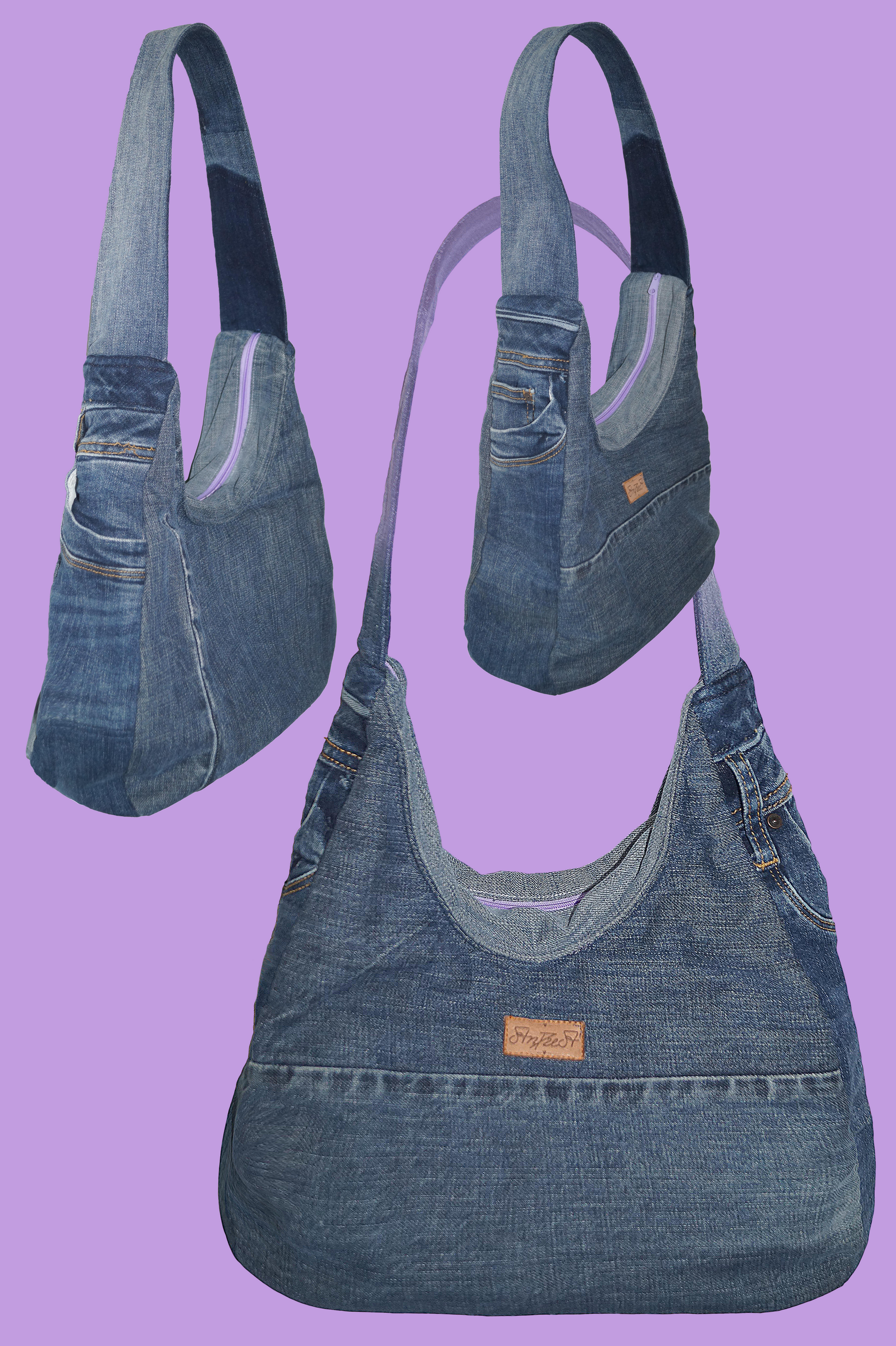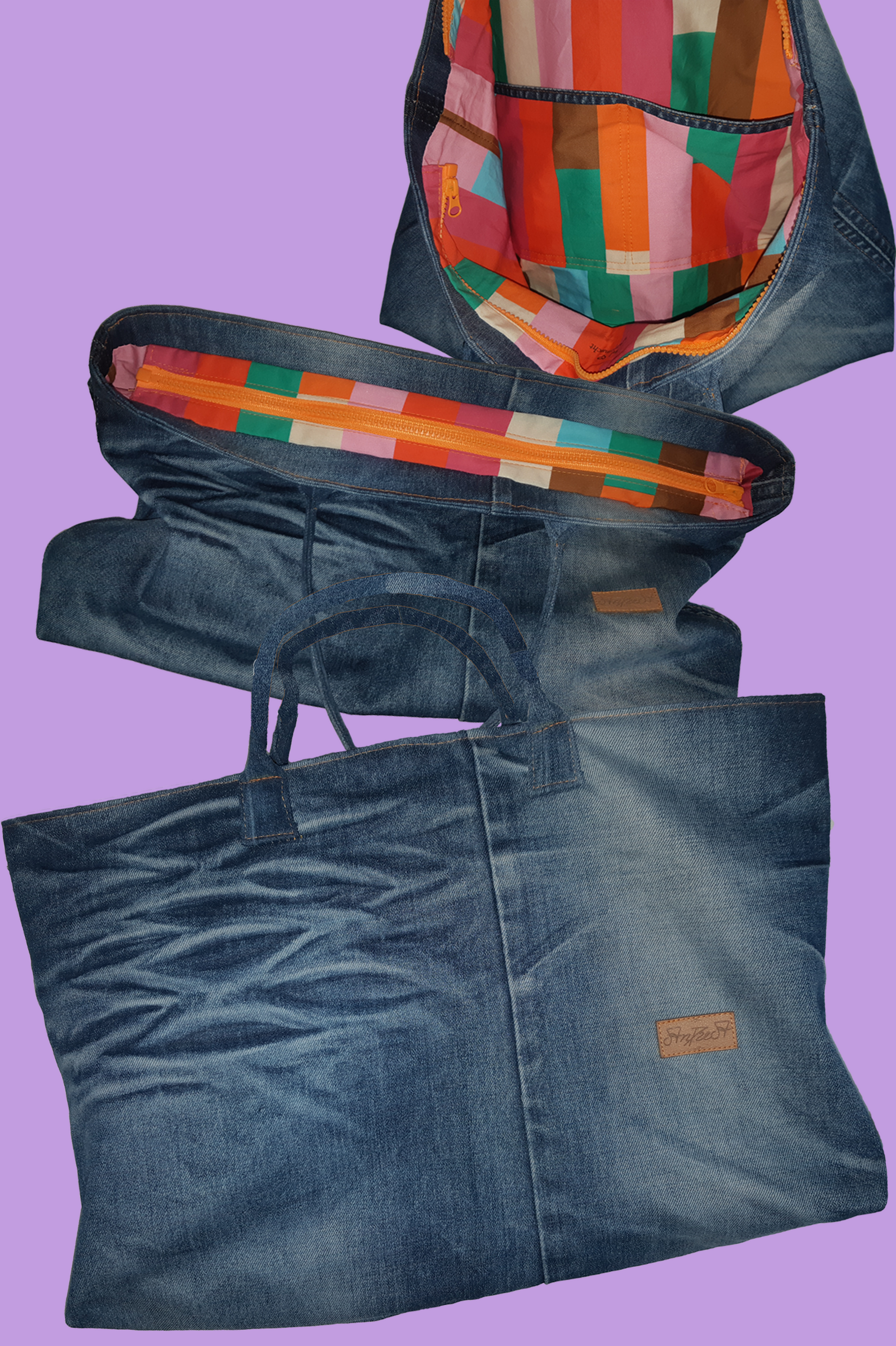 Hier gibt's Beispiele, wie aus unterschiedlichen Jeans individuelle Taschen entstanden sind: